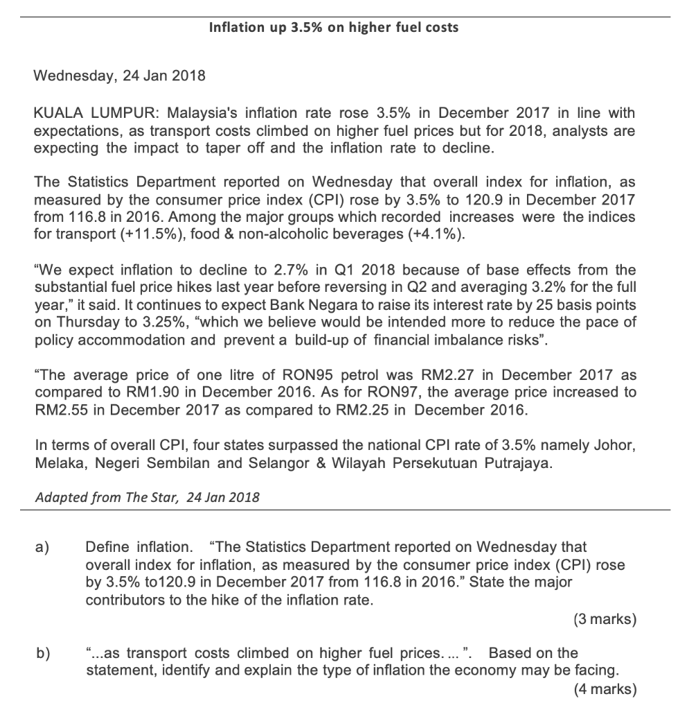 Solved Inflation Up 3 5 On Higher Fuel Costs Wednesday 24 Chegg Com